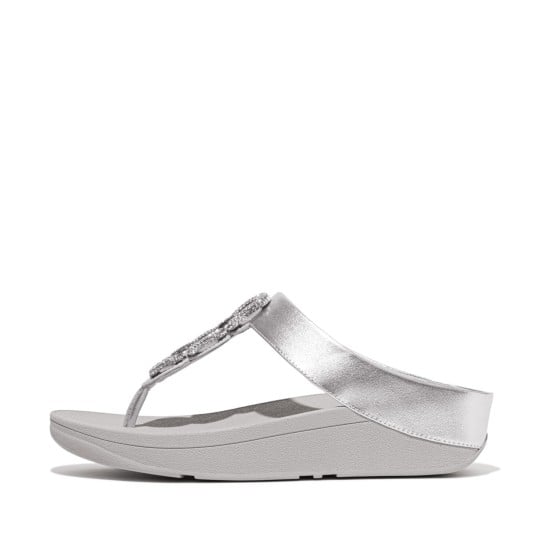Fitflop Fino Crystal-Chain M/Leather Toe-Post Sandals