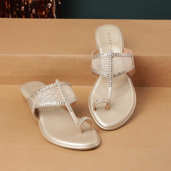 Women Antic-gold Ethnic Kolhapuris / Antic-gold